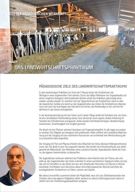 „Ziele und Wertvorstellungen und das Wesen des Menschen müssen zuerst vom Erzieher „erforscht“ und dann in „geistergreifender Gesinnung“, wie es Rudolf Steiner formulierte, in Elternverhalten und Schulalltag umgesetzt werden, in brüderliche Einstellung im Berufs- und Wirtschaftsleben. Neue Denkgewohnheiten im Anschauen des Menschen machen neue Begriffe und Bewußtseinserweiterung notwendig.“(2)